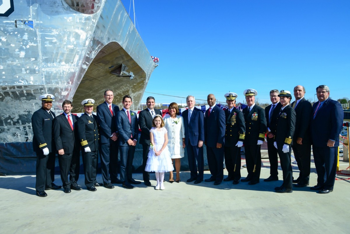 Over 300 naval and shipyard guests attended the ceremony, which was held alongside the USNS Trenton at Austal USA’s Vessel Completion Yard (VCY). The Honorable Ray Mabus, Secretary of the Navy, was the principal speaker at the event.