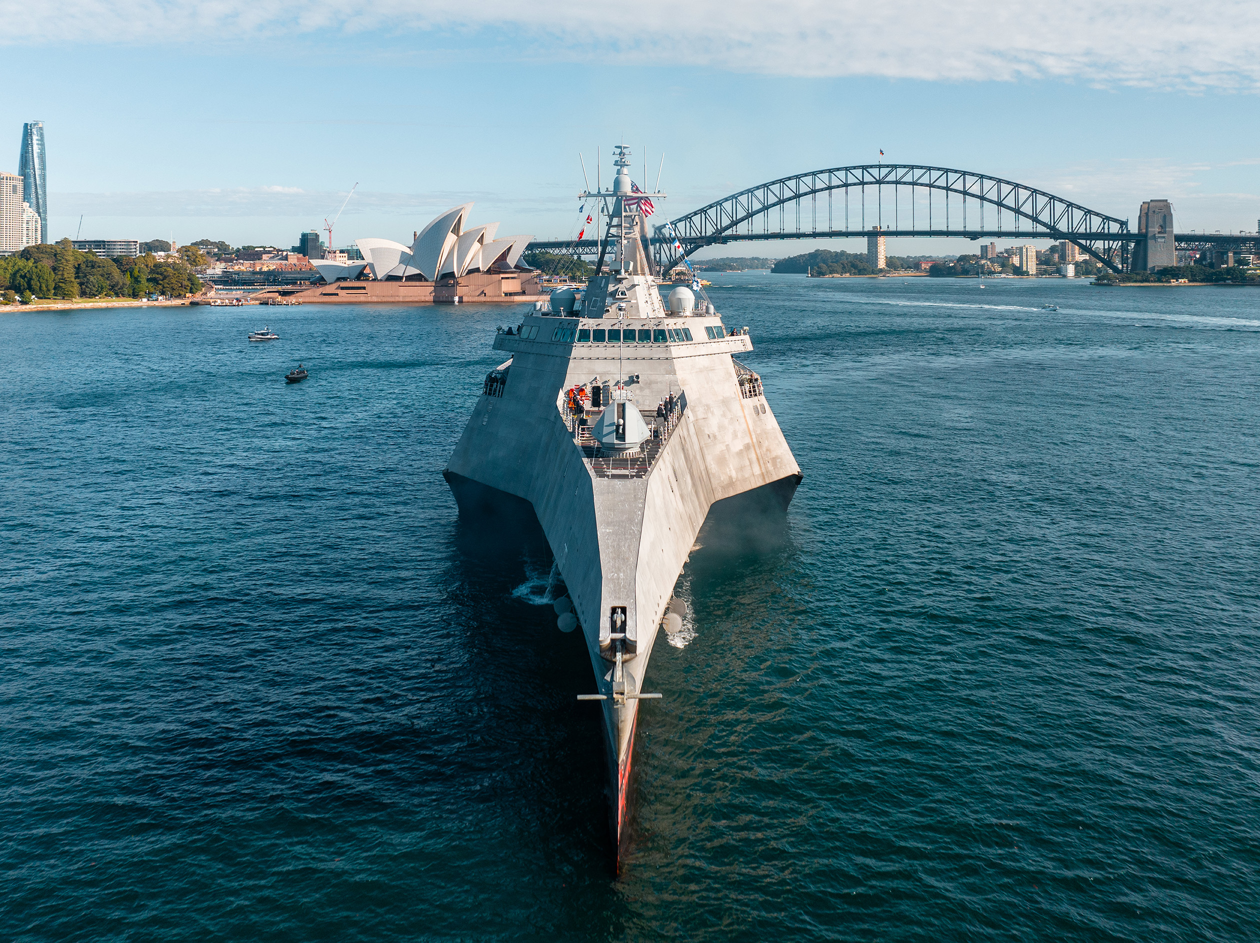 The vessel, one of 19 Littoral Combat Ships the company’s USA subsidiary is building for the US Navy, arrived today after transiting across the Pacific. When officially commissioned this Saturday, it will be the only US Navy vessel ever to be commissioned outside of the United States of America, a reflection of both the important relationship that exists between the USA and Australia as well as the ship’s Australian heritage.