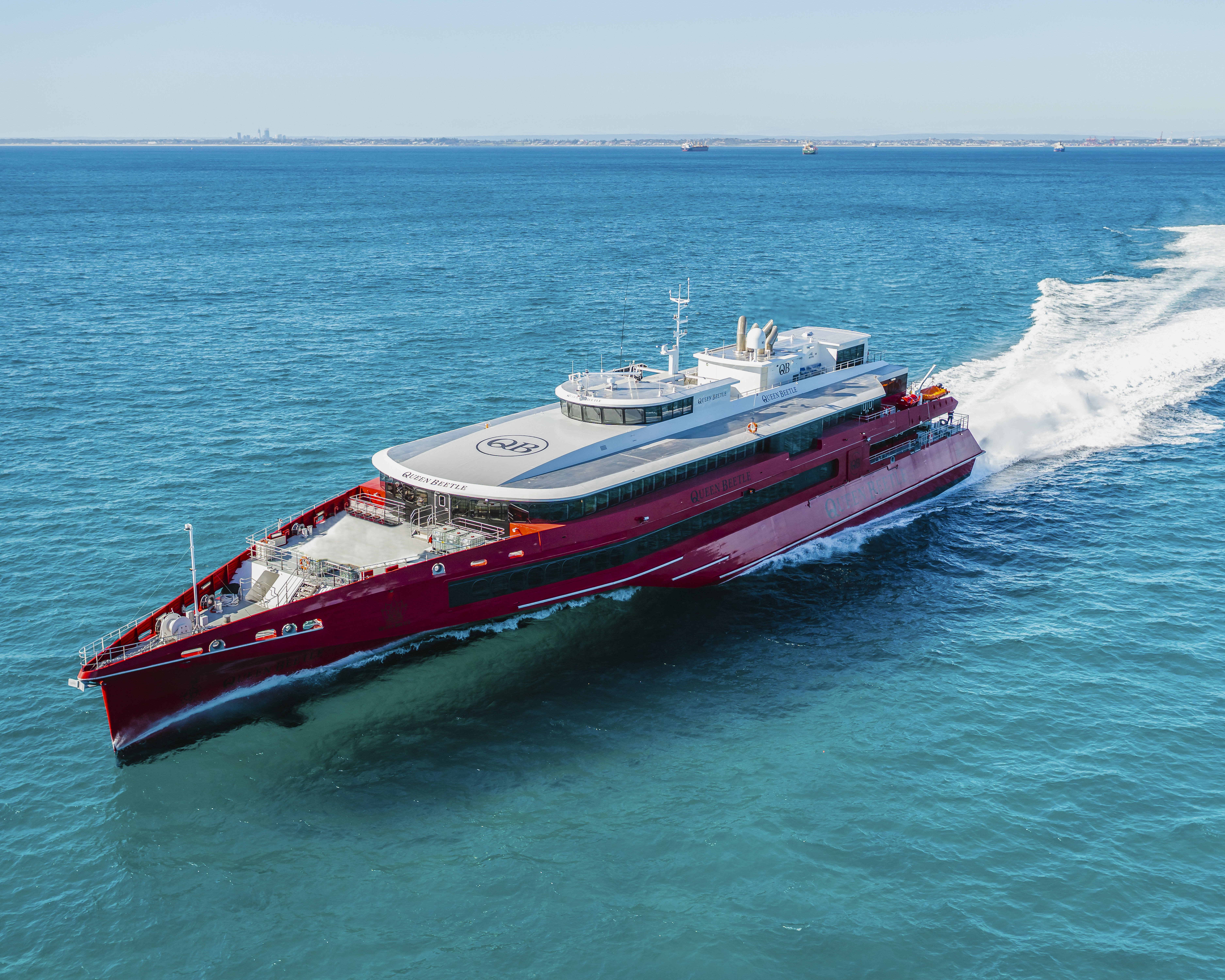 During sea trials, Queen Beetle achieved impressive speed, seakeeping and passenger comfort results, utilising Austal’s new MARINELINK technology that provides real-time monitoring, control and analysis of vessel performance, on board and remotely. With the benefit of Austal’s MOTION CONTROL System, Queen Beetle was able to reach trial speeds in excess of 40 knots whilst maintaining outstanding stability and passenger comfort.