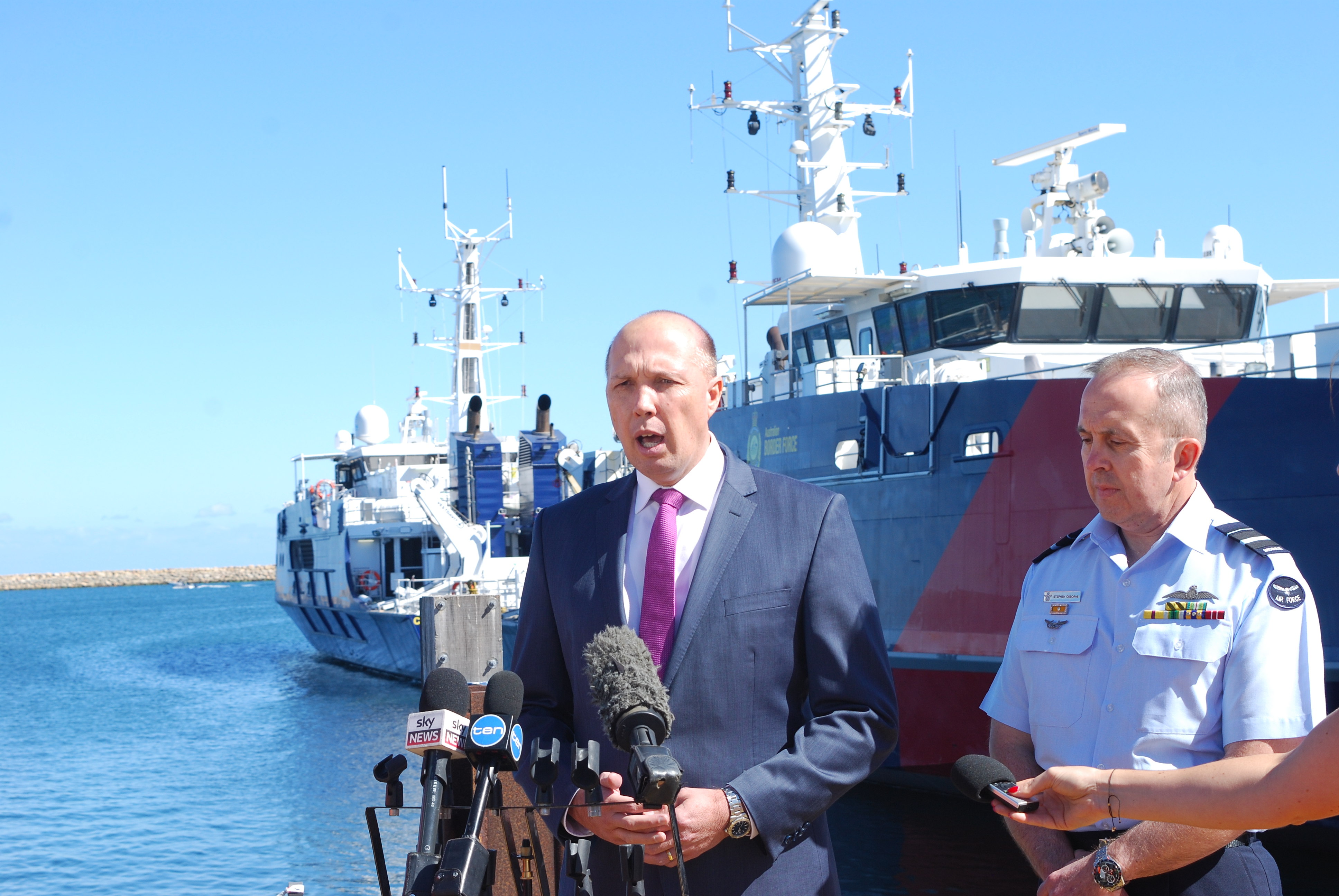 Joined by Senator Linda Reynolds CSC, Senator Dr Chris Back, and Air Vice-Marshal Stephen Osborne CSC, Minister Dutton viewed Australian Border Force Cutters ABFC Cape Leveque and ABFC Cape St George, which are being serviced under a A$330million acquisition and sustainment contract awarded to Austal by the Commonwealth of Australia in 2011.