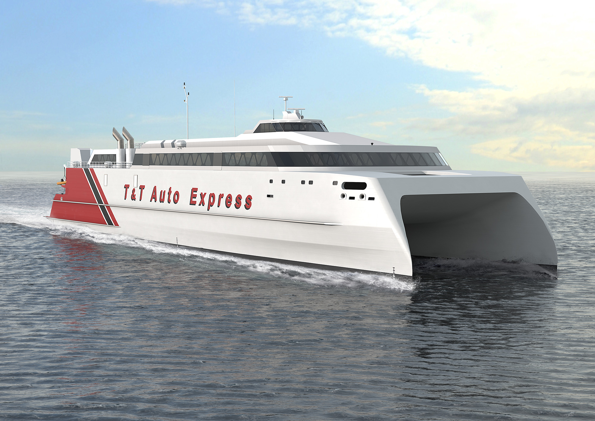 The 94m AutoExpress is designed to carry 926 passengers and 250 cars at speeds of 37.5 knots and will operate a daily service between the islands of Trinidad and Tobago. The ship will also feature Austal’s newly developed and industry leading innovation in smart ship technology, MarineLink Smart.