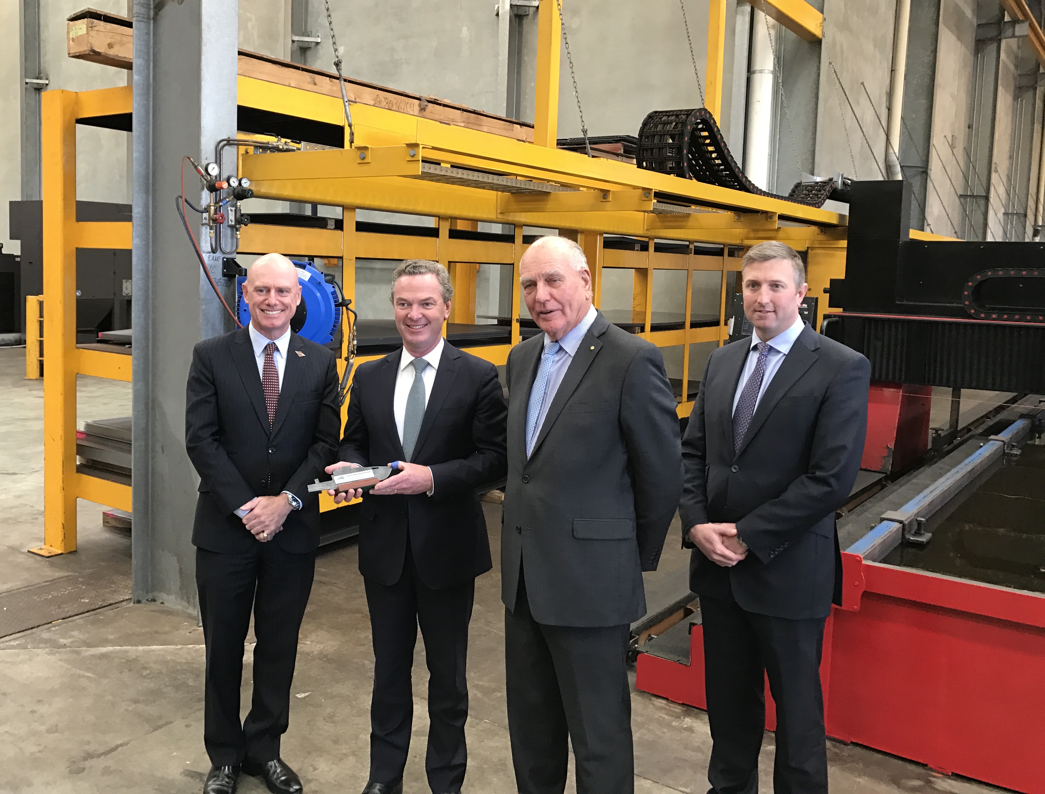 Joining Minister Pyne at the ceremony were Shadow Minister for Defence Issues, Mr Sean L'Estrange MLA, Austal’s Chairman, Mr John Rothwell, Chief Operating Officer Patrick Gregg, HD Plasma and Laser Cutting Services Managing Director Les Archibald and representatives from the Royal Australian Navy, Department of Defence, suppliers and industry.