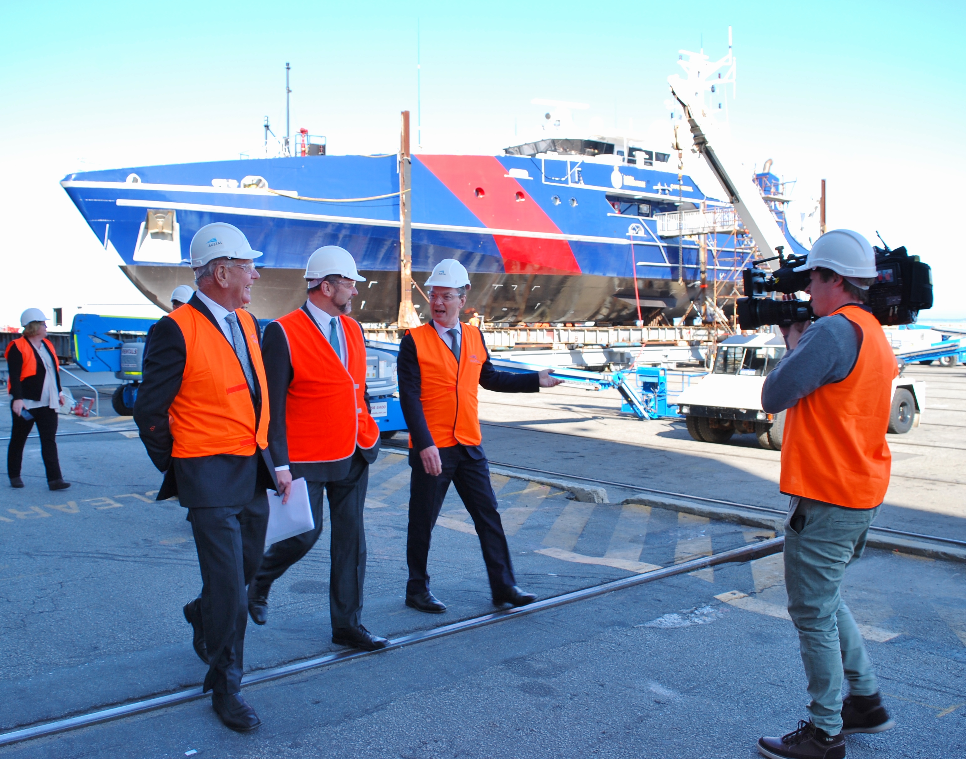 During Minister Pyne’s first visit to Henderson and Austal, he reviewed construction progress of two 58 metre Cape-class patrol boats (CCPB’s) to be delivered to the Royal Australian Navy in 2017. These two follow on from eight CCPB’s designed and constructed by Austal for the Australian Border Force over 2013 – 2015, which are now operating across Northern Australia.
