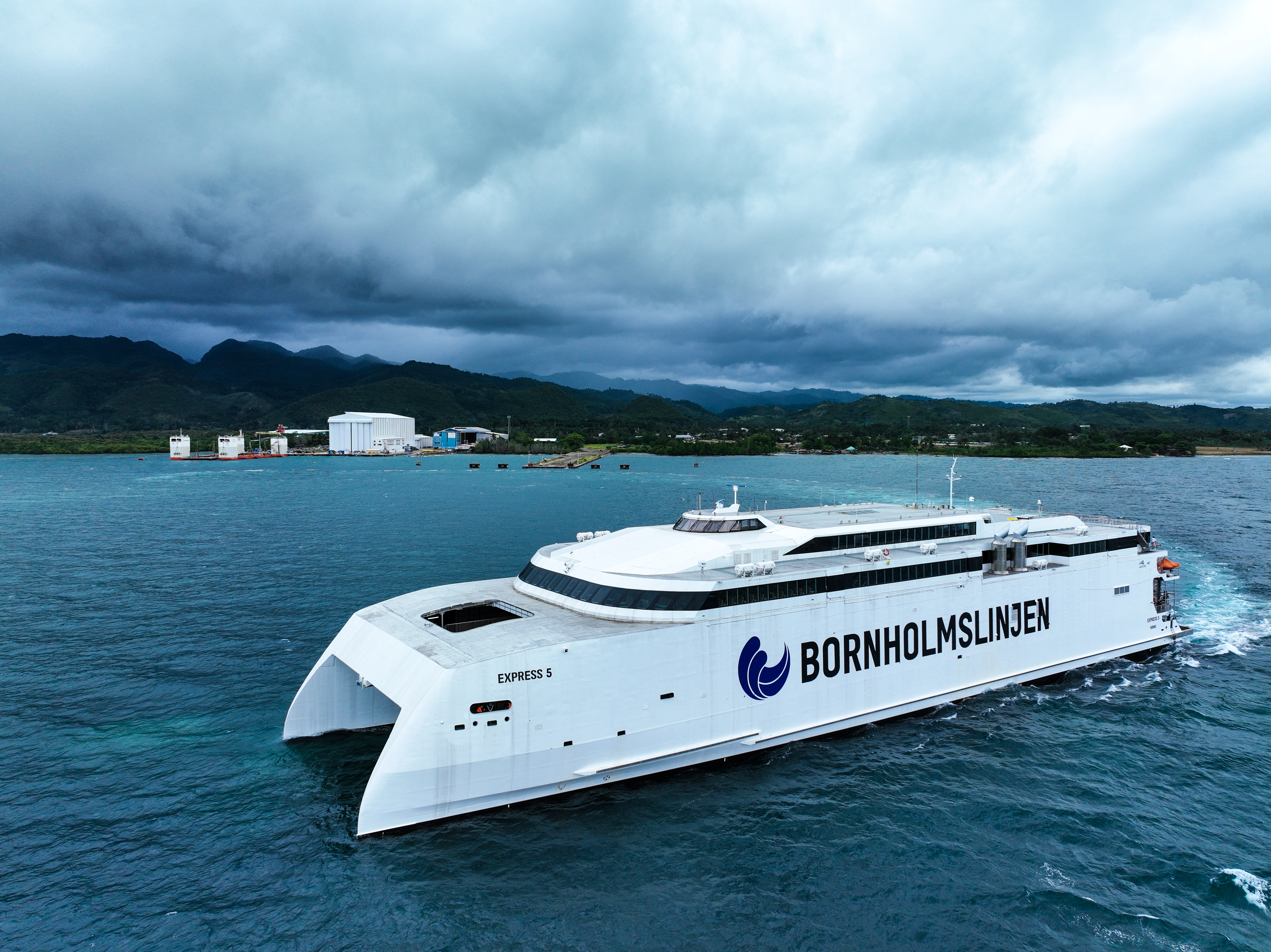 Austal Philippines has delivered the 115-metre, high-speed vehicle-passenger ferry Express 5, to Molslinjen of Denmark, following the successful completion of sea trials in Balamban, Cebu.