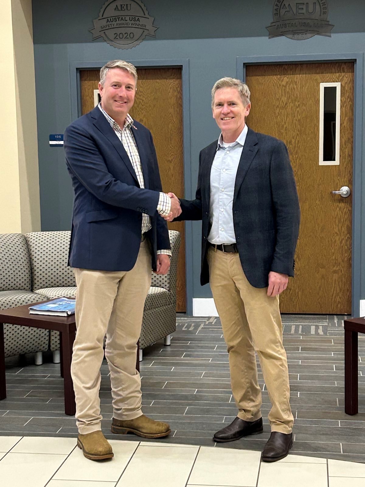Austal Limited CEO Paddy Gregg and Birdon CEO Jamie Bruce at Austal USA’s headquarters in Mobile, Alabama (Photo: Austal)