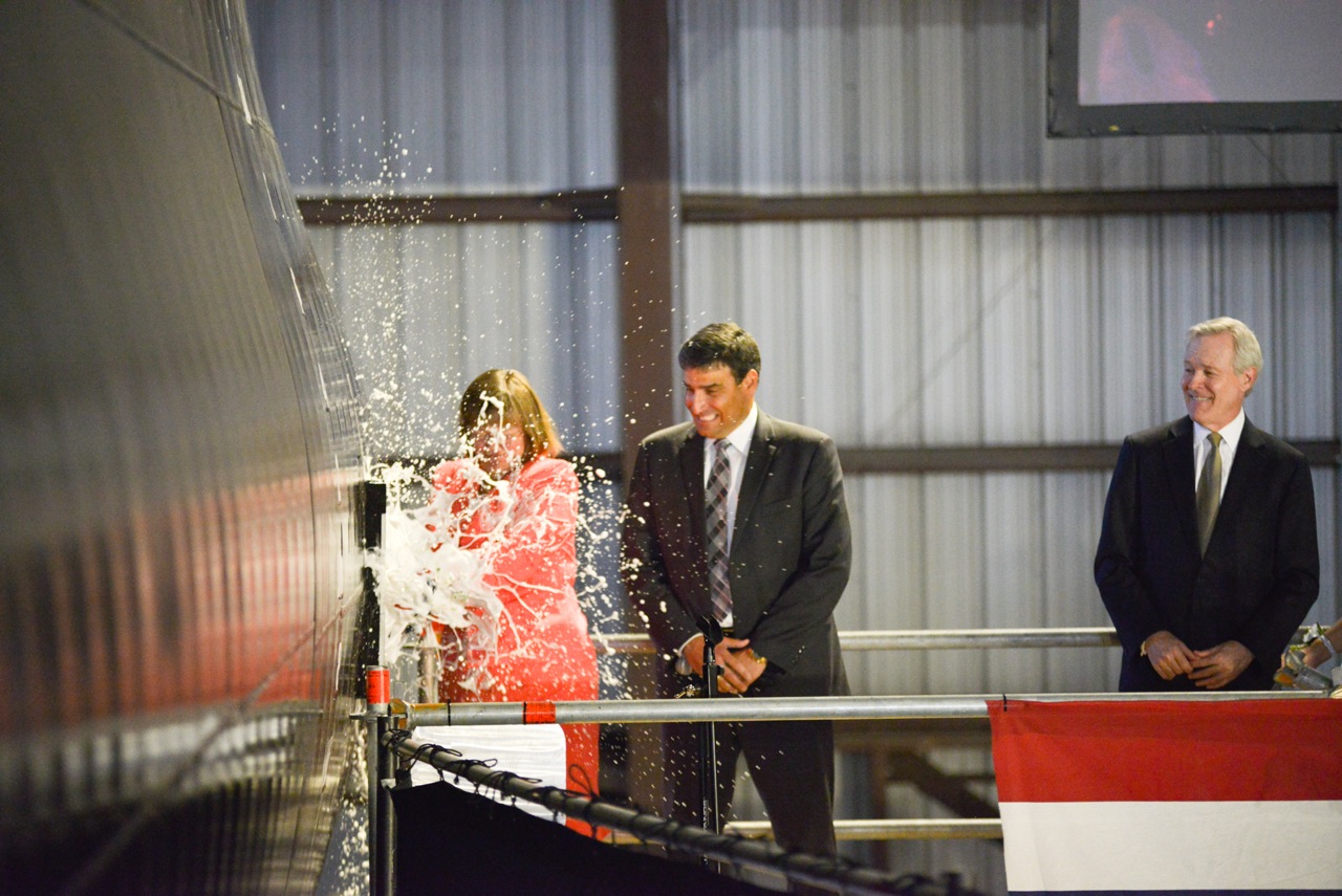 JHSV 6 Christening - Lee Booterbaugh breaking the bottle.