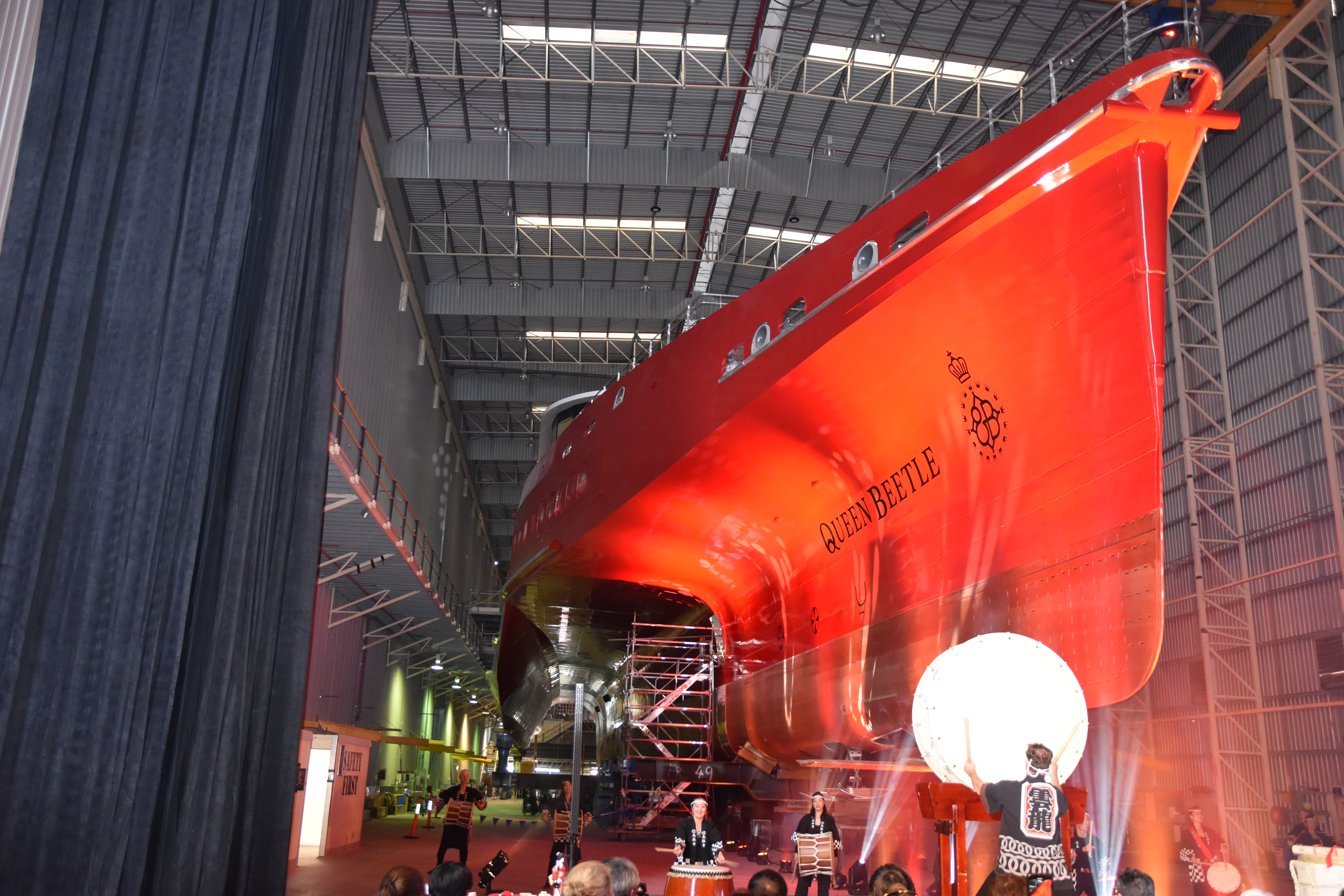 “JR Kyushu Jet Ferry is very excited about the imminent launch, completion and delivery of the Queen Beetle trimaran and we look forward to commencing services in Japan, in July. The reveal ceremony has assured us the Queen Beetle will be the most impressive ship in our fleet,” Mr Aoyagi said.